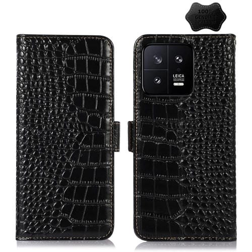 Para Xiaomi 13 Funda de Teléfono de Piel de Vaca con Capa Superior de Cocodrilo (Negro)