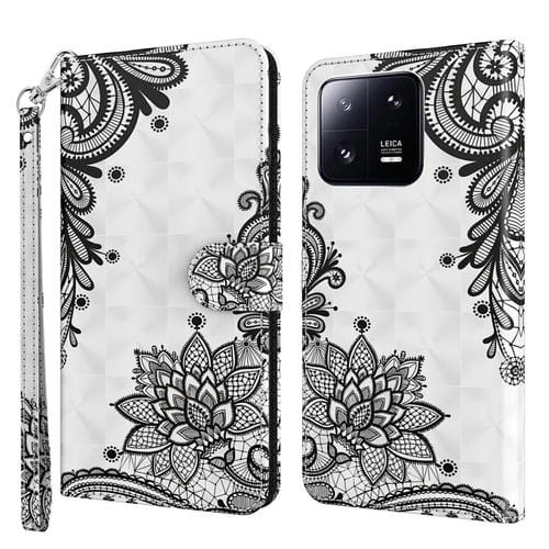 Pour Xiaomi 13 Pro Étui de téléphone en cuir à rabat à motif de peinture 3D (fleur noire diagonale)