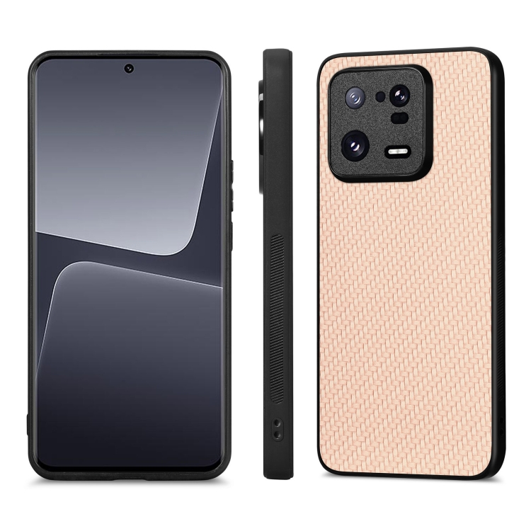 Para Xiaomi 13 Pro Funda Trasera de Cuero con Textura de Fibra de Carbono (Caqui)