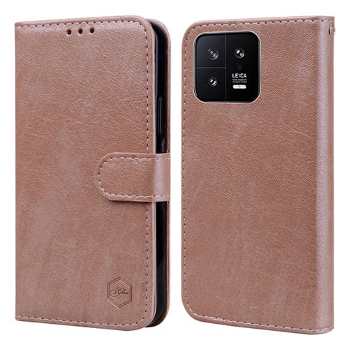 Para Xiaomi 13 Sensación de Piel Aceite Textura de Cuero Pu + TPU Funda para Teléfono (Champán)
