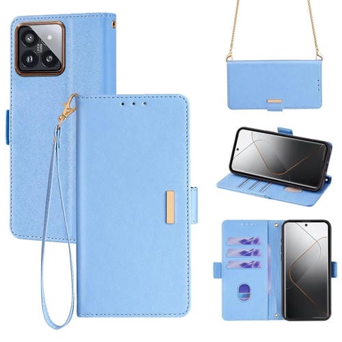 Para Xiaomi 14 Pro Funda De Cuero Para Teléfono Con Cadena Cruzada (Azul)