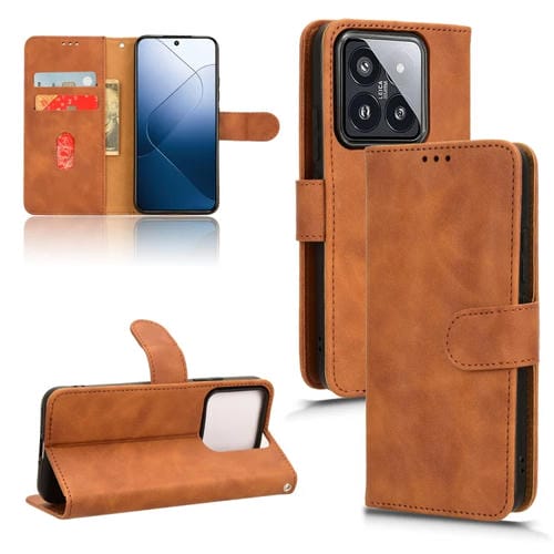 Para Xiaomi 14 Pro Skin Feel Funda De Teléfono De Cuero Con Tapa Magnética (Marrón)