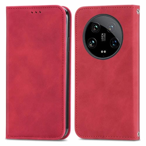 Para Xiaomi 14 Ultra Retro Skin Feel Funda De Teléfono De Cuero Con Tapa Magnética (Rojo)