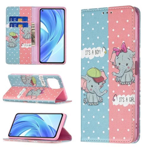 Para Xiaomi Mi 11 Lite Patrón de Dibujo de Color Invisible Magnético Horizontal Flip Pu Funda de Cuero con Soporte y Ranuras para Tarjetas (Elefante)
