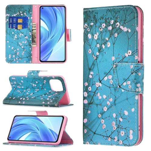 Para Xiaomi Mi 11 Lite Patrón de Dibujo de Color Patrón de Cuero Horizontal Flip Funda con Soporte y Ranuras para Tarjetas (Plum Blossom)