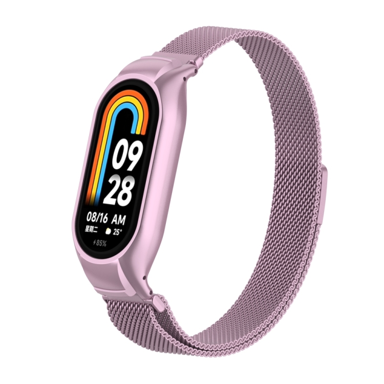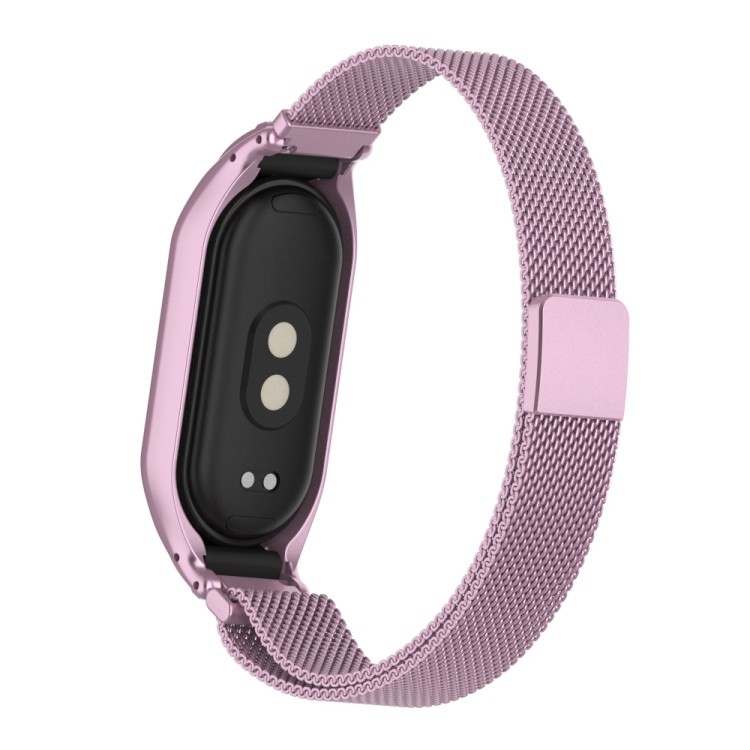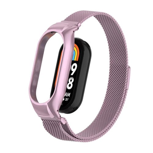 Caja de Metal Integrada para Xiaomi Mi Band 8 + Banda Magnética Milanesa (Rosa)