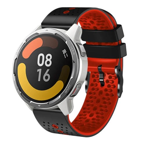 Banda de Reloj de Silicona Bicolor Perforada para Xiaomi Mi Watch Color 2 22mm (Negro + Rojo)