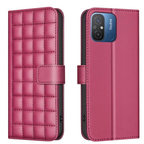 Para Xiaomi Poco C55 / Redmi 12C Funda de Cuero para Teléfono con Textura Cuadrada (Rojo)