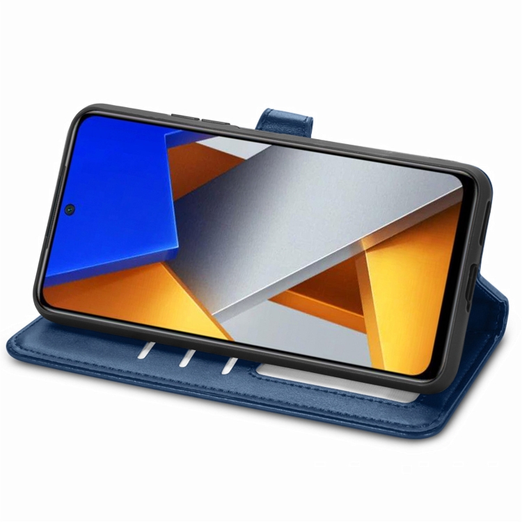 Para Xiaomi Poco M4 Pro Retro Color Sólido Hebilla de cuero funda telefónica (azul)