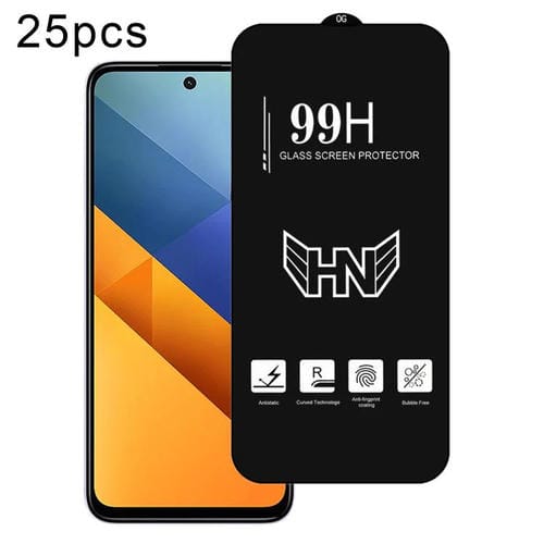 Para Xiaomi Poco M6 4G 25 Piezas de Película de Vidrio Templado de Pantalla Completa de Arco Grande de Aluminio Alto