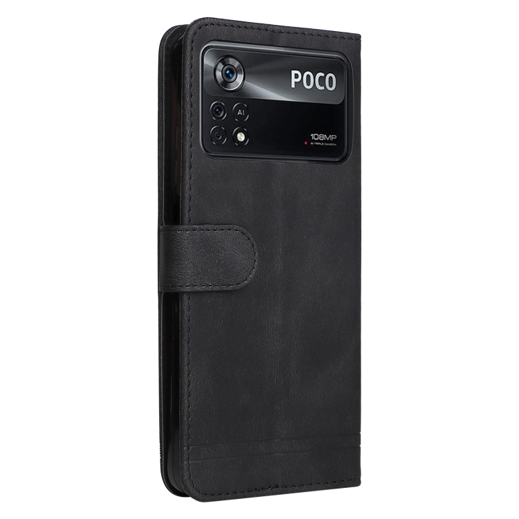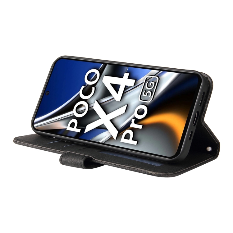 Para Xiaomi Poco X4 Pro 5G Siente Siente Life Tree Metal Button Funda telefónica de cuero (Negro)