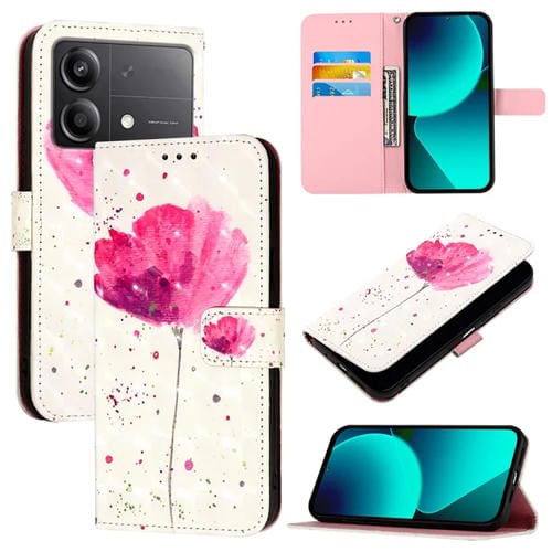 Para Xiaomi Poco X6 Neo Global 3D Pintura Funda de Teléfono de Cuero con Tapa Horizontal (Flor)