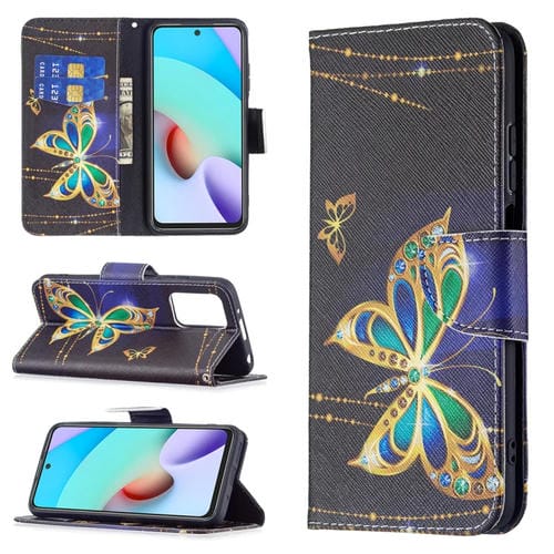 Para Xiaomi Redmi 10 Coloreado Dibujo Patrón Horizontal Funda de Cuero con Soporte y Tragamonedas y Billetera (Mariposa Grande)