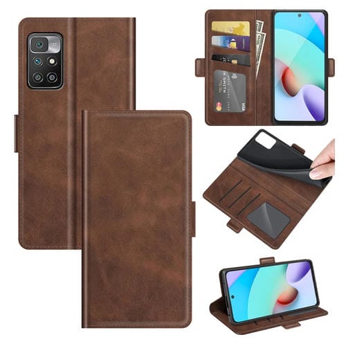 Para Xiaomi Redmi 10 Hebilla Magnética de Doble Lado Caja de Cuero Hebilla Horizontal con Soporte y Tragamonedas y Billetera (Marrón)