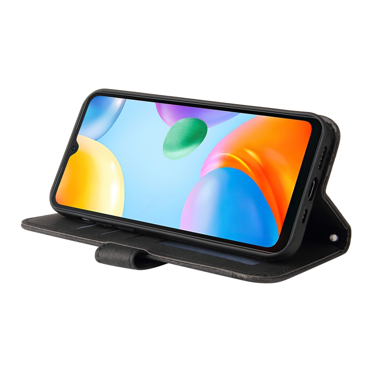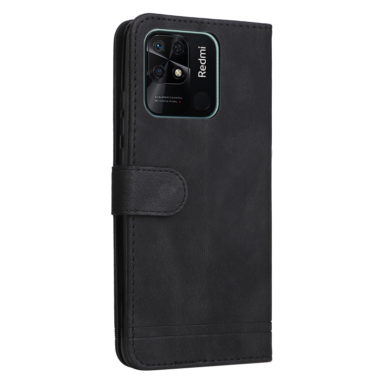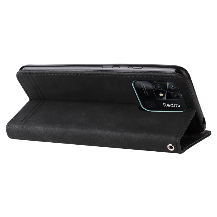 Para Xiaomi Redmi 10C 4G / REDMI 10 India Versión de la India Siente Tree Tree Metal Button Funda telefónica de cuero (negro)