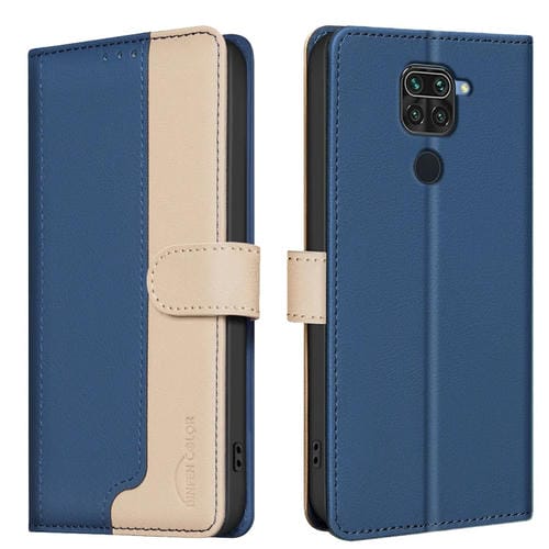 Para Xiaomi Redmi 10X 4G / Note 9 Funda de Cuero Antirrobo Rfid a Juego de Colores (Azul)