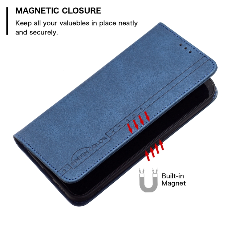 Para Xiaomi Redmi 9 Bloqueo de RFID Magnetic Blocking Funda de cuero antirrobo con soporte y ranuras para tarjetas y billetera (azul)