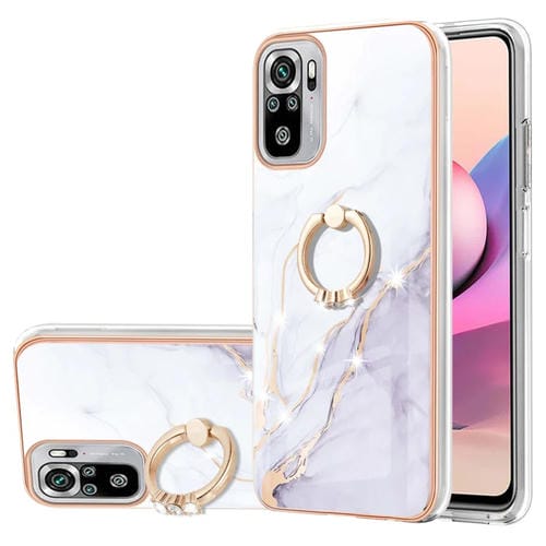 Para Xiaomi Redmi Note 10S / Nota 10 4G Patrón de Mármol de Galvanoplastia Imd TPU Funda a Prueba de Golpes con Soporte de Anillo (Blanco 006)