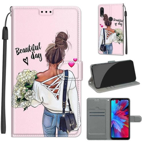 Para Xiaomi Redmi Note 7 Voltaje Dibujo de Color Magnético Cierre Magnético Flip Pu Funda de Cuero con Soporte y Ranuras para Tarjetas (Flor del Abrazo C09)