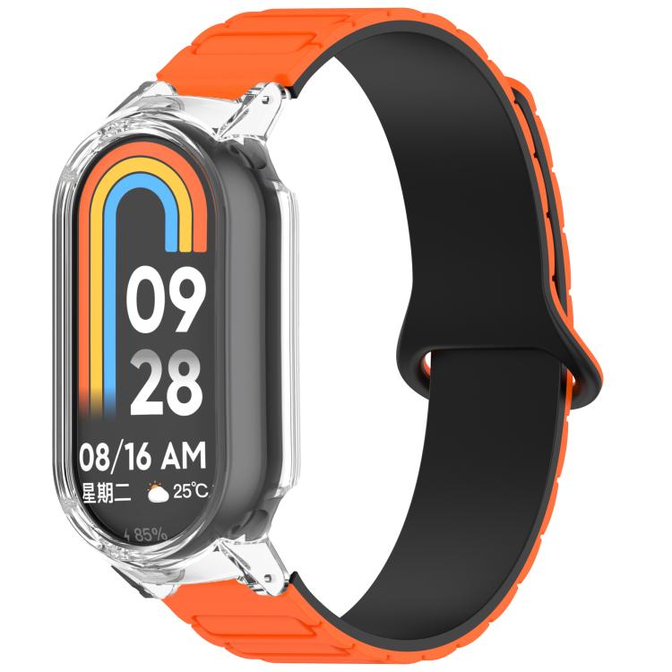 Para Xiaomi Smart Band 9/9 NFC Watch Case Correa de reloj de silicona magnética en forma de I integrada (naranja, negro y transparente)