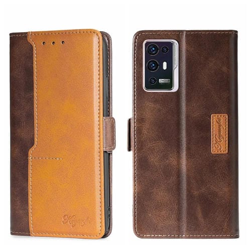 Funda de Cuero para ZTE Axon 30 Pro con Hebilla Lateral y Contraste (Marrón Oscuro + Dorado)
