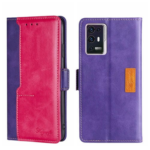 Funda de Cuero para ZTE Axon 30 Pro con Hebilla Lateral y Color de Contraste (Púrpura + Rosa Roja)