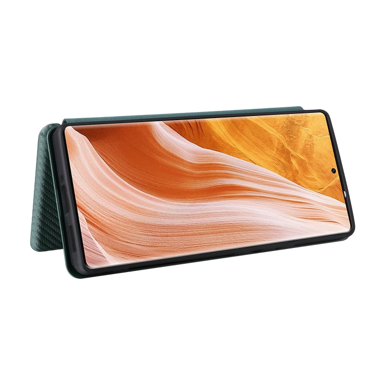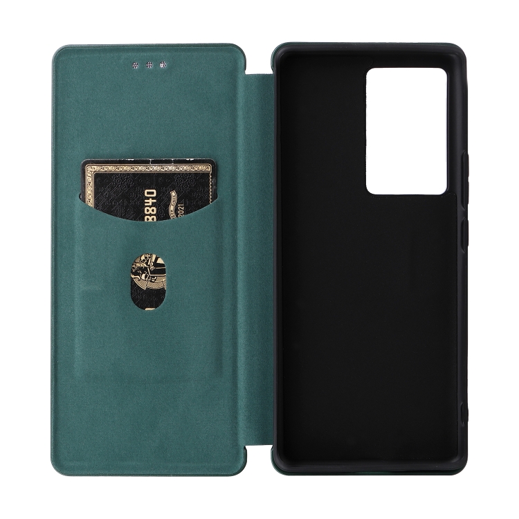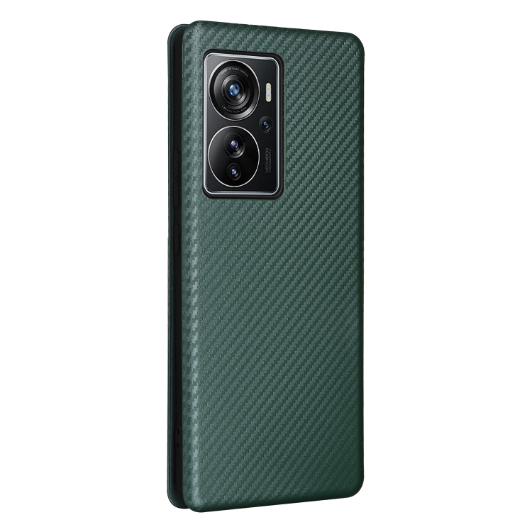 Funda de Cuero para ZTE Axon 40 Pro con Textura de Fibra de Carbono (Verde)