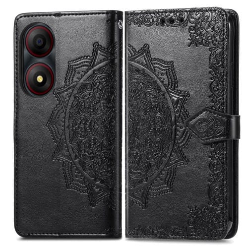 Funda para ZTE Blade A34 de Cuero con Relieve Flor de Mandala (Negro)