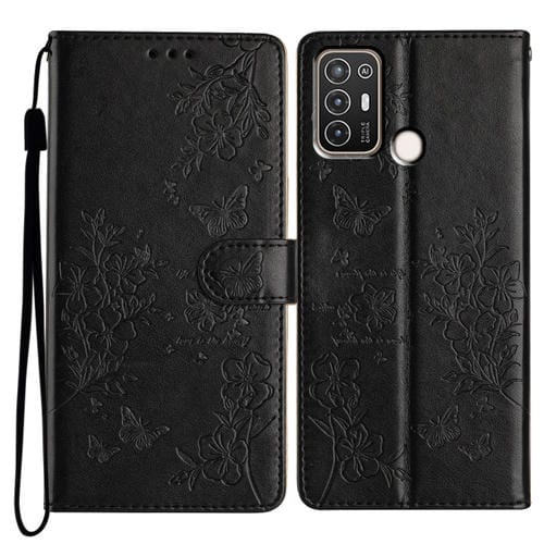 Pour ZTE Blade A52 Étui de téléphone en cuir gaufré avec fleur d'amour papillon (noir)