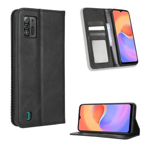 Funda de Cuero para ZTE Blade A52 Lite con Hebilla Magnética y Textura Retro (Negro)