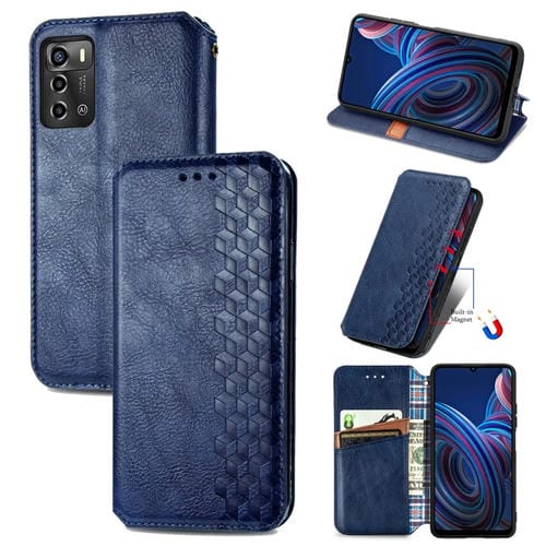 Caja de Teléfono para ZTE Blade A72 4G Cuero Magnético Prensado Rejilla Cúbica (Azul)