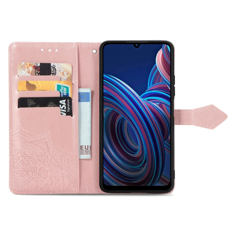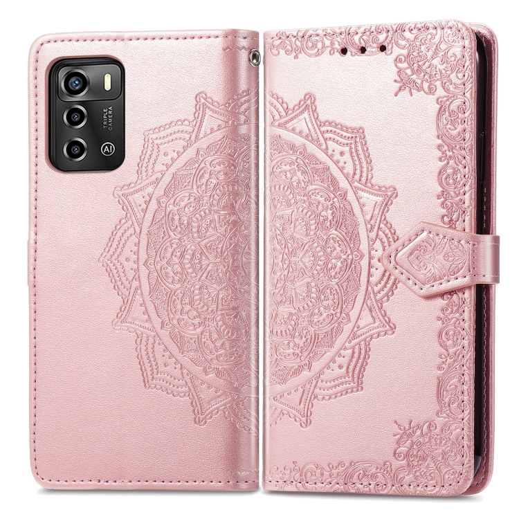 Funda para ZTE Blade A72 4G Mandala Flower en Cuero En Relieve (Oro Rosa)