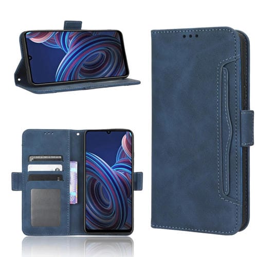 Funda de cuero para ZTE Blade A72 5G con textura becerro y ranuras para tarjetas (Azul)