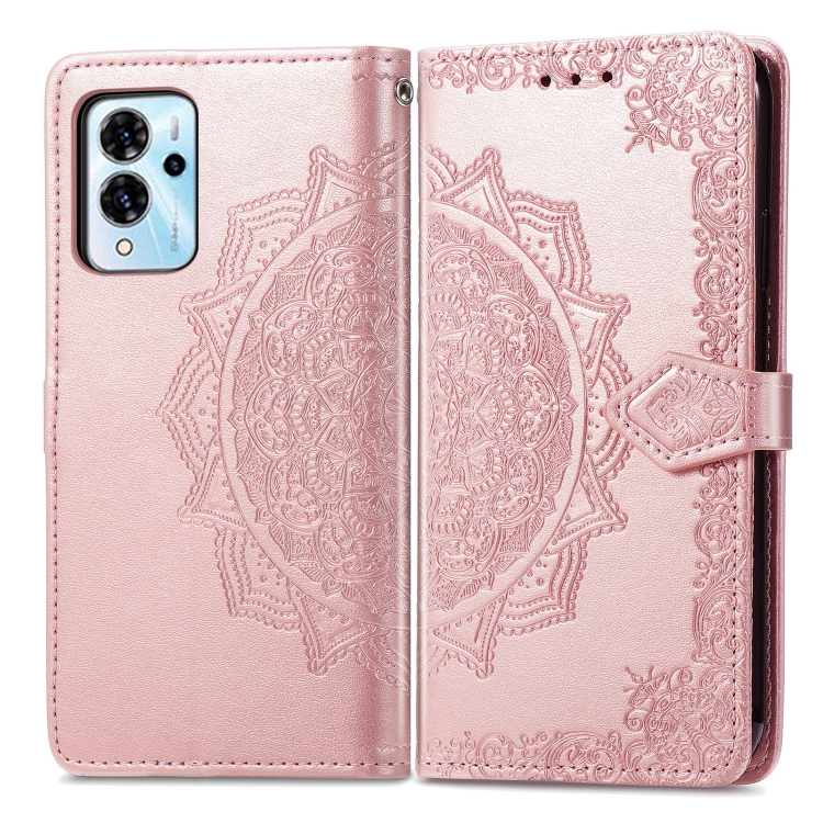 Estuche para ZTE Blade V40 Pro Mandala Flower de Cuero en Relieve (Oro Rosa)