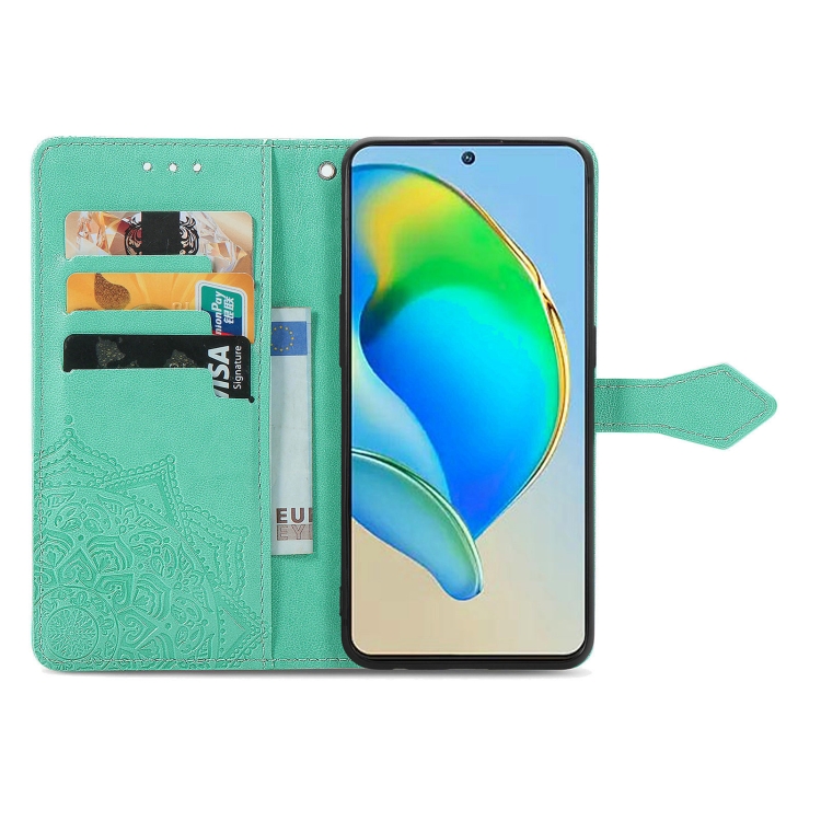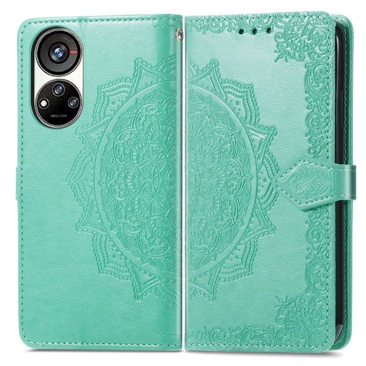 Estuche para Teléfono ZTE Blade V40S Mandala Flower Cuero En Relieve (Verde)
