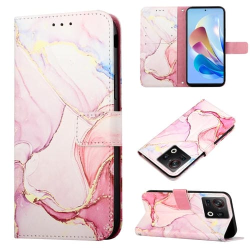Estuche de Cuero para ZTE Nubia Z40S Pro Pt003 con Tapa de Patrón Mármol (Oro Rosa)