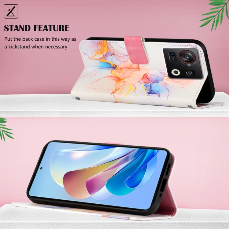 Funda de Cuero para ZTE Nubia Z40S Pro Pt003 con Tapa y Patrón Mármol (Galaxy Marble White)