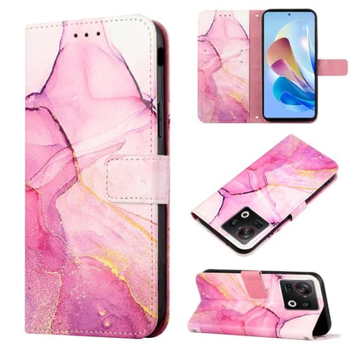 Funda para ZTE Nubia Z40S Pro Pt003 con Tapa de Cuero y Patrón de Mármol (Rosa, Púrpura, Oro)