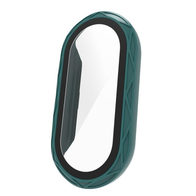 Película de vidrio templado con textura de nido de pájaro para Xiaomi Smart Band 9/9/8 NFC, funda de PC integrada (verde aguja de pino)