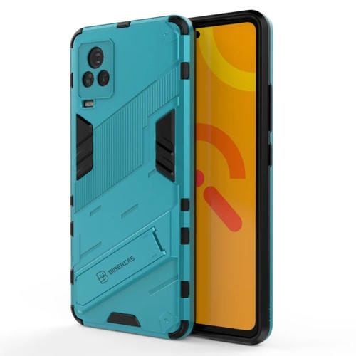 Punk Armor 2 En 1 PC + TPU Funda a Prueba de Golpes con Titular Invisible para Vivo Iqoo 7 (Azul)