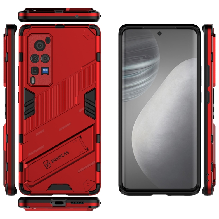 Punk Armor 2 En 1 PC + TPU Funda a Prueba de Golpes con Titular Invisible para Vivo X60 Pro (Rojo)