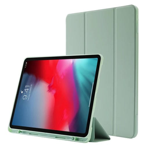Funda de Cuero Skin Feel Pen Holder Tri-Fold para iPad Pro 12.9 2018-2022 (Matcha Green)