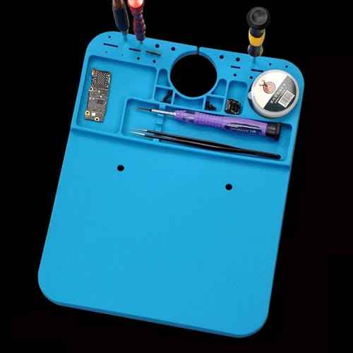 La estera de trabajo de aislamiento de Silicona para microscopio está diseñada específicamente para facilitar la Reparación de Teléfonos Móviles y otros dispositivos electrónicos. Con unas dimensiones de 20x26 cm, esta alfombra ofrece un área de trabajo óptima para tareas de soldadura y desmontaje bajo microscopio, proporcionando un entorno limpio y ordenado. Fabricada en Silicona de alta densidad con recuperación de memoria, es lavable, plegable y resistente a altas temperaturas, lo que garantiza protección térmica durante procesos de soldadura. Su diseño antiestático y las ranuras para posicionamiento de tornillos y Accesorios permiten una manipulación precisa y segura de Componentes electrónicos. Es compatible con una amplia variedad de dispositivos electrónicos como Smartphones, Laptops y Placas de circuitos, facilitando el trabajo de Técnicos y usuarios que reparan por cuenta propia.