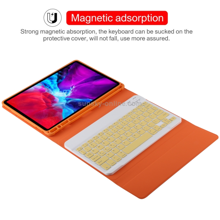 Teclado Bluetooth desmontable Tg11B funda cuero microfibra iPad Pro 11 (2020) con ranura lápiz soporte (Naranja)