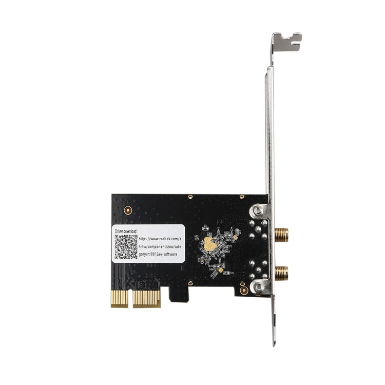 • Velocidad de datos: 2.4 GHz hasta 300 Mbps, 5 GHz hasta 867 Mbps; interfaz PCI Express 1x; Antenas duales de 5 dBi desmontables; indicador LED para estado WLAN; dimensiones 65 x 44.5 x 1.6 mm
