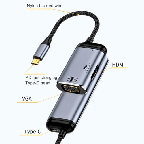 - 1x Cable Adaptador de Audio 3 en 1 Y001 USB-C/Tipo-C a VGA, HDMI y USB-C/Tipo-C