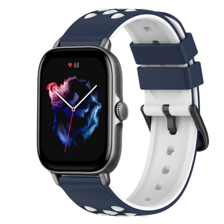Correa de Reloj Amazfit GTR 42mm 20mm Silicona Porosa Dos Colores (Azul Medianoche + Blanco)