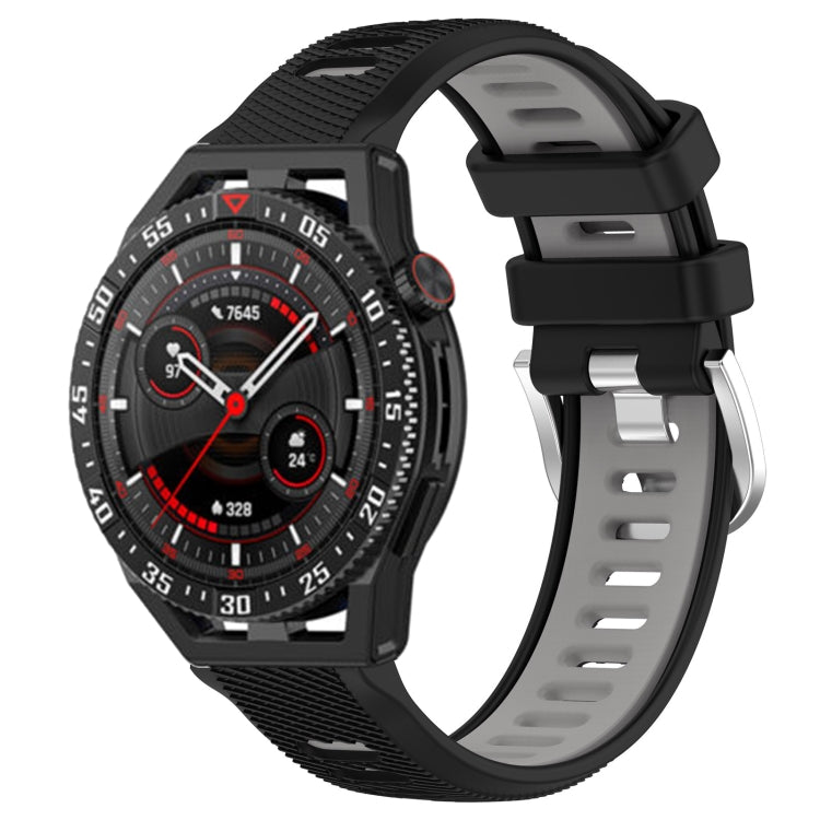 Correa de Silicona para Huawei Watch 3 22mm Deportes con Hebilla de Acero (Negro + Gris)
