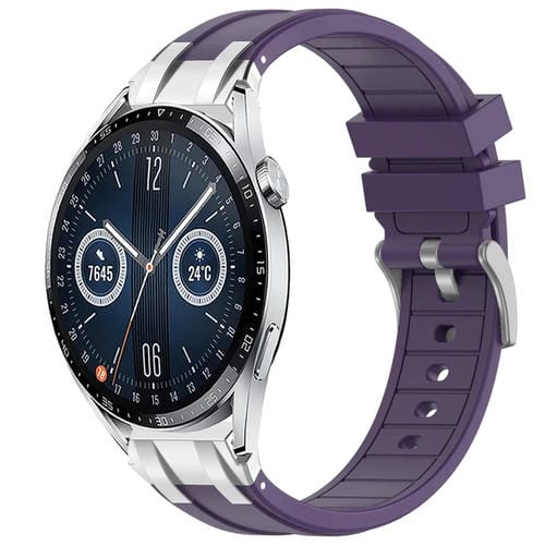 Correa de Silicona Huawei Watch GT3 46mm 22mm Hebilla Plateada Liberación Rápida (Morado)