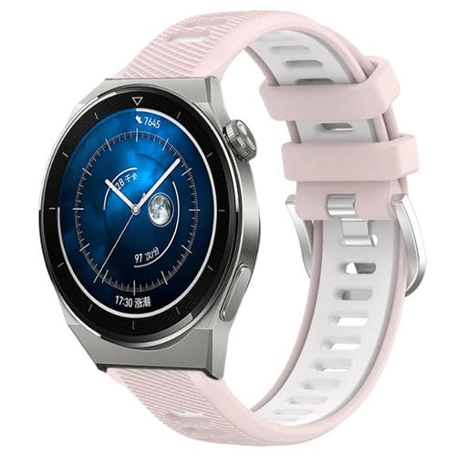 Correa de Silicona para Huawei Watch GT3 SE 22mm Deportes con Hebilla de Acero (Rosa + Blanco)